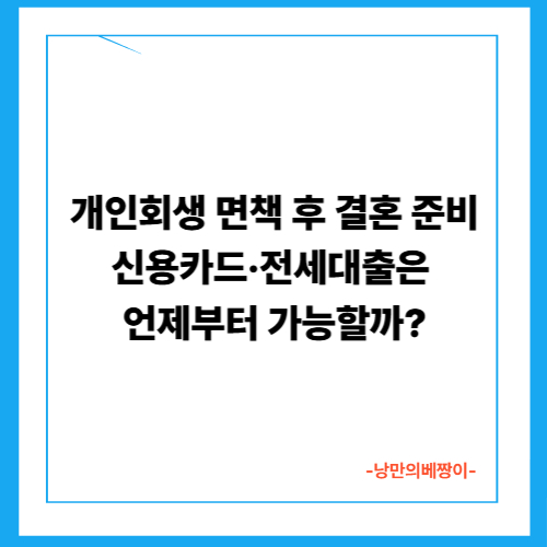 본 글에서는 개인회생 면책 후 신용카드 및 전세대출 활용 시기, 결혼 준비 계획, 그리고 신용 재건 방법까지 상세하게 안내드립니다.
