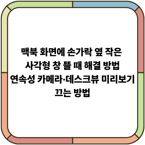 맥북 화면에 손가락 옆 작은 사각형 창 뜰 때 해결 방법|연속성 카메라·데스크뷰 미리보기 끄는 방법