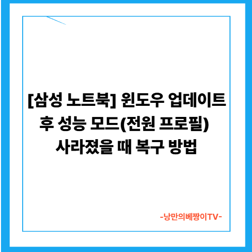 [삼성 노트북] 윈도우 업데이트 후 성능 모드(전원 프로필) 사라졌을 때 복구 방법