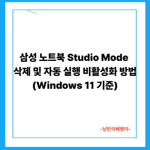 삼성 노트북 Studio Mode 삭제 및 자동 실행 비활성화 방법 (Windows 11 기준)