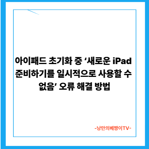 아이패드 초기화 중 ‘새로운 iPad 준비하기를 일시적으로 사용할 수 없음’ 오류 해결 방법