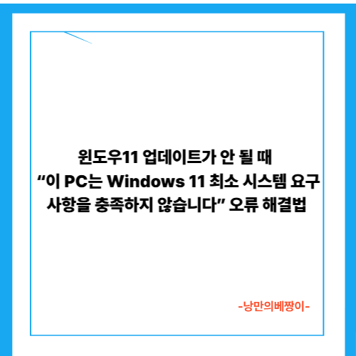 윈도우11 업데이트가 안 될 때 — “이 PC는 Windows 11 최소 시스템 요구 사항을 충족하지 않습니다” 오류 해결법