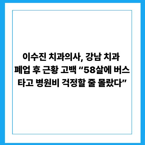이수진 치과의사, 강남 치과 폐업 후 근황 고백|“58살에 버스 타고 병원비 걱정할 줄 몰랐다”