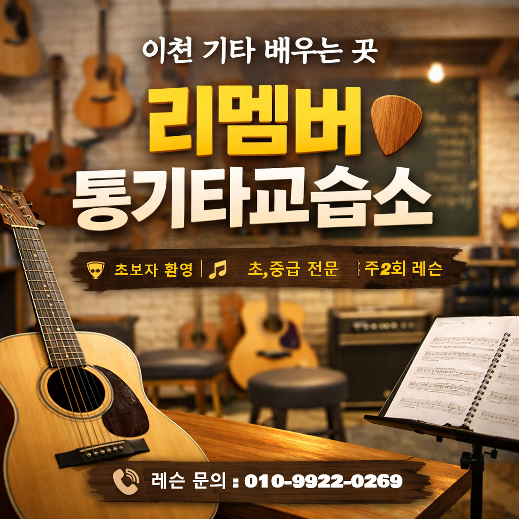위치 : 이천시 향교로 18번길 1, (2층) 리멤버통기타교습소 (한신아파트 옆 헤어블라썸 2층)