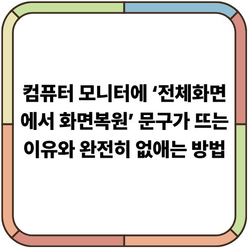 컴퓨터 모니터에 ‘전체화면에서 화면복원’ 문구가 뜨는 이유와 완전히 없애는 방법