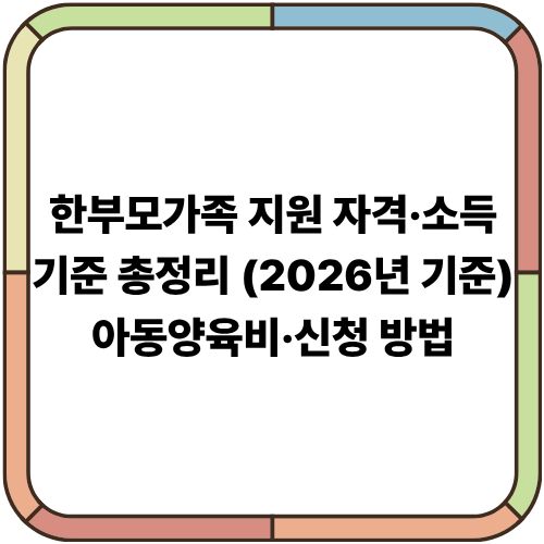 한부모가족 지원 자격·소득기준 총정리 (2026년 기준)|아동양육비·신청 방법