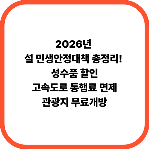 2026년 설 민생안정대책 총정리! 성수품 할인·고속도로 통행료 면제·관광지 무료개방