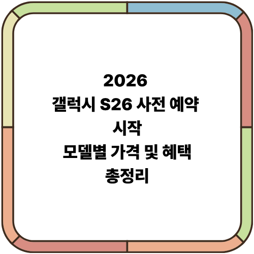 2026 갤럭시 S26 사전 예약 시작: 모델별 가격 및 혜택 총정리