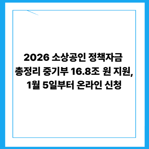 2026 소상공인 정책자금 총정리|중기부 16.8조 원 지원, 1월 5일부터 온라인 신청