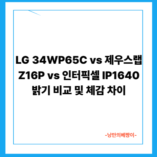 LG 34WP65C vs 제우스랩 Z16P vs 인터픽셀 IP1640 밝기 비교 및 체감 차이
