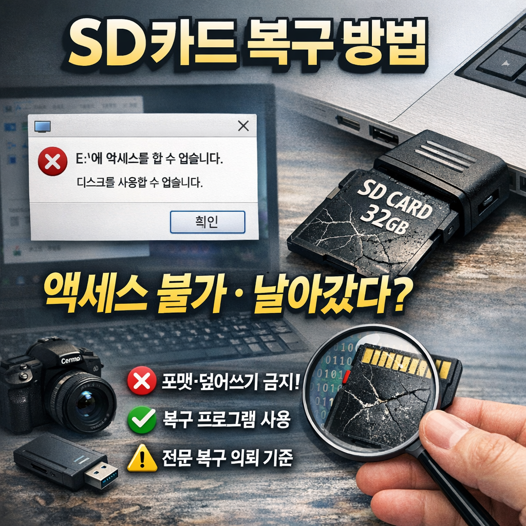 SD카드 복구 방법 – “액세스를 할 수 없습니다 SD카드 날아갔다”라고 나올 때 실제 해결 순서